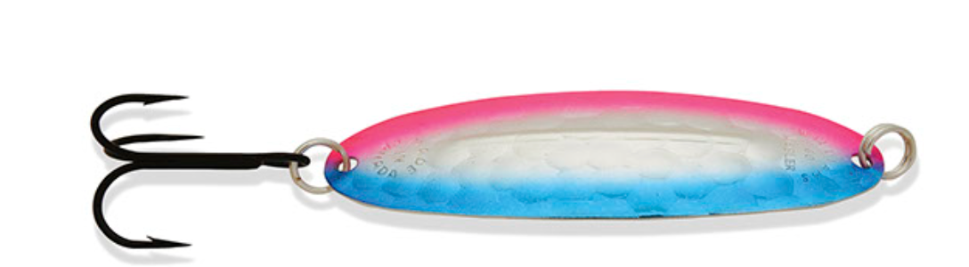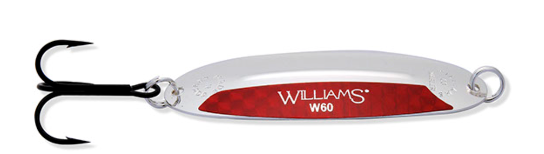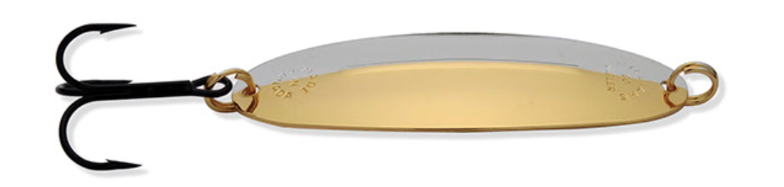The Williams Wabler is the lure that founded the fishing tackle division of the Williams Company more than 100 years ago. The most recognized and still today the most popular model in the Williams series, the Wabler has been a mainstay of anglers. Originally popular as a lake trout spoon, the Wabler has proven itself, as the photo gallery of past literature will attest to, on a multitude of species including; rainbows, browns and all members of the trout family. A northern pike favourite, musky, walleye and salmon as well as salt water species in coastal waters. The Wabler, like all Williams lures, is stamped from premium polished brass. A multi-step plating operation then applies the genuine Silver and/or 24K Gold finishes that Williams lures are renowned for. These are not standard Silver and Gold finishes either. The final step in the Williams plating process incorporates a further plated “electroclear” outer coat which is then baked on. This process does not dull the finish as a laquer would. It does render Williams Silver and 1/2 & 1/2 finishes saltwater resistant and basically tarnish proof. The Wabler is a versatile spoon which works equally well at a wide range of speeds due to its stabilizing ridge and shape. The ridge which has become a trademark of Williams lures prevents the Wabler from rotating without changing the proven shape and action of the lure. This ridge works so well that Williams was awarded a US and Canadian patent for it. One of the few patents ever awarded to a spoon. Time tested and proven, a true Canadian classic with worldwide recognition.