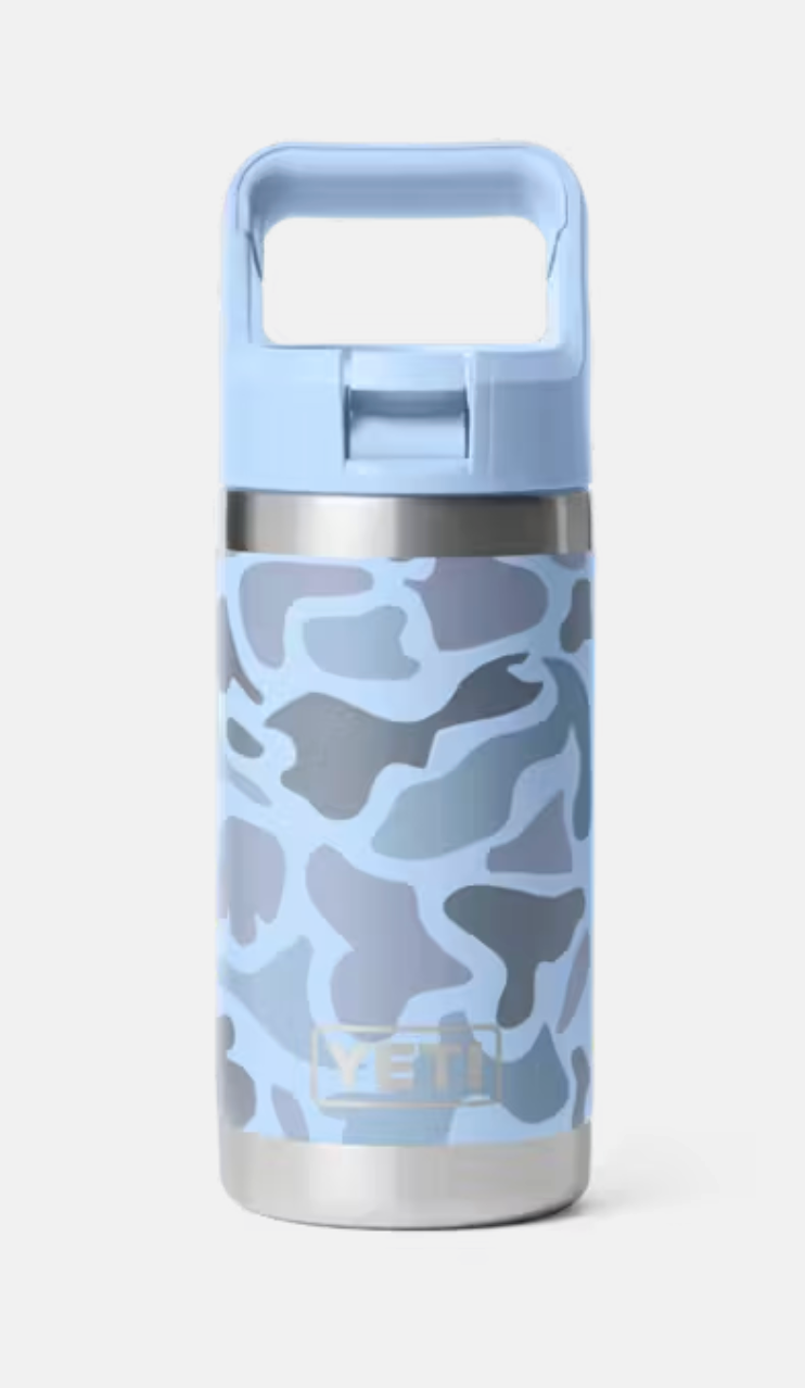 Yeti Rambler Jr 355mL Kids Water Bottle w/Color Match Straw Cap. Blue Camo