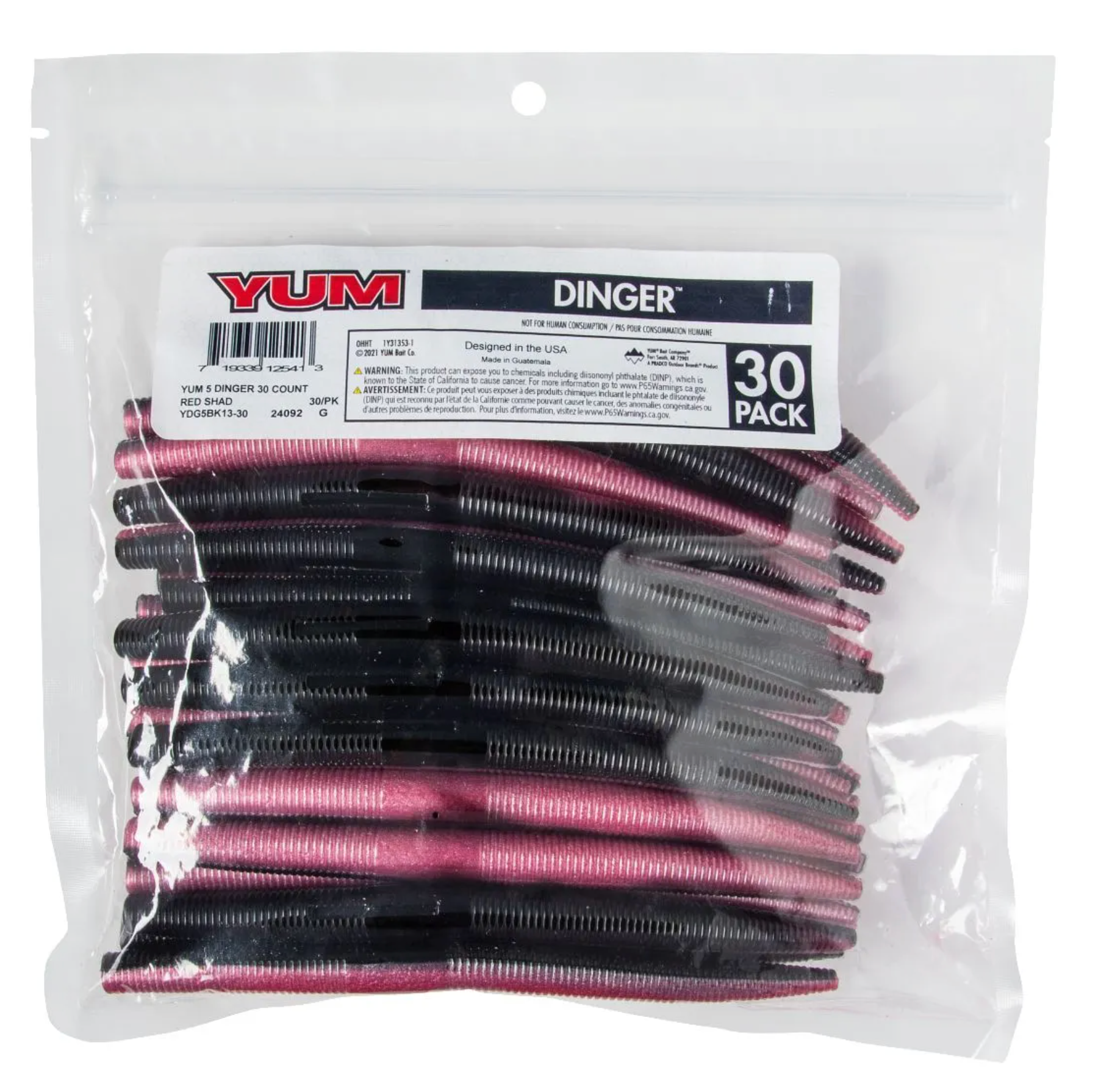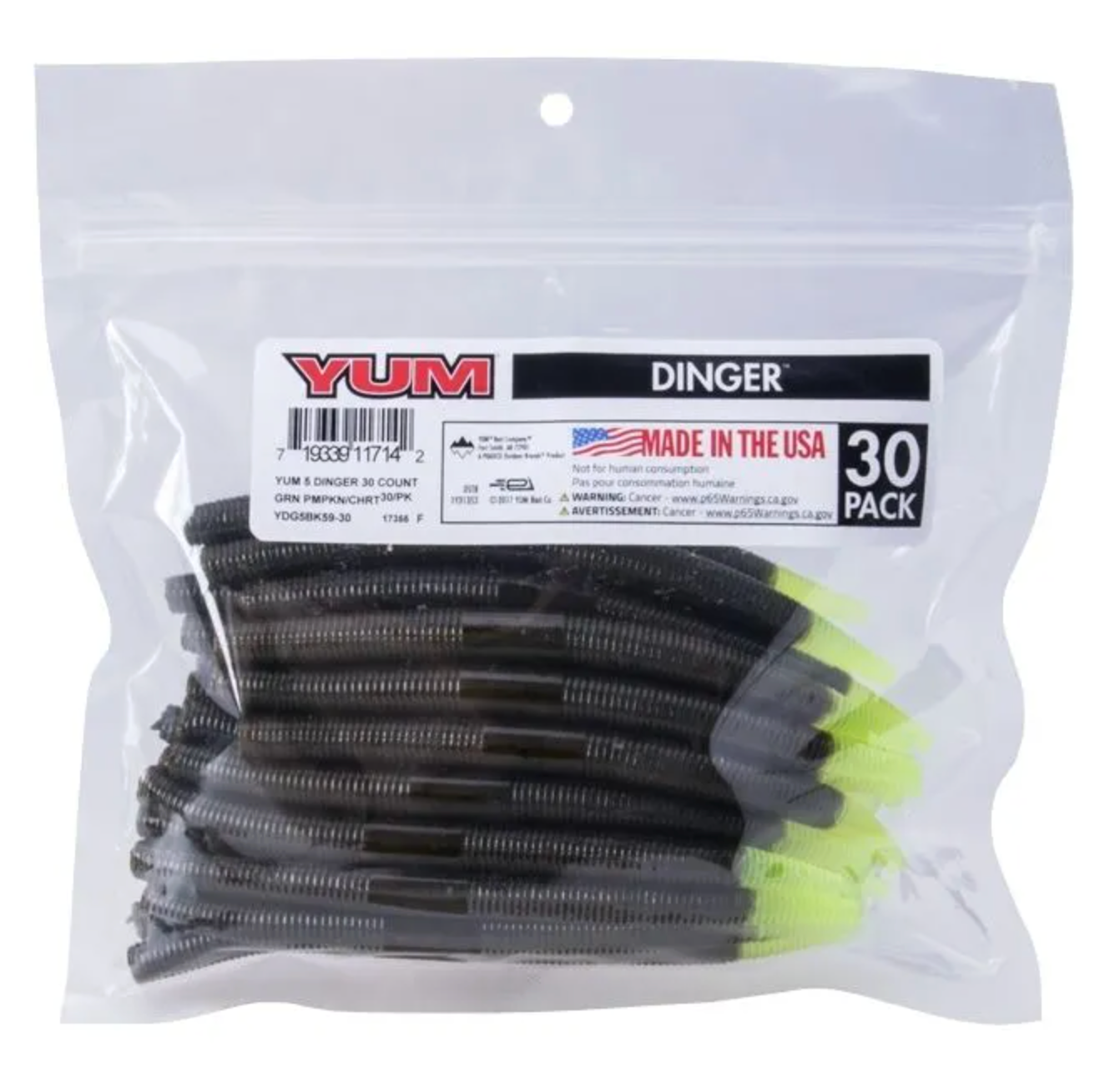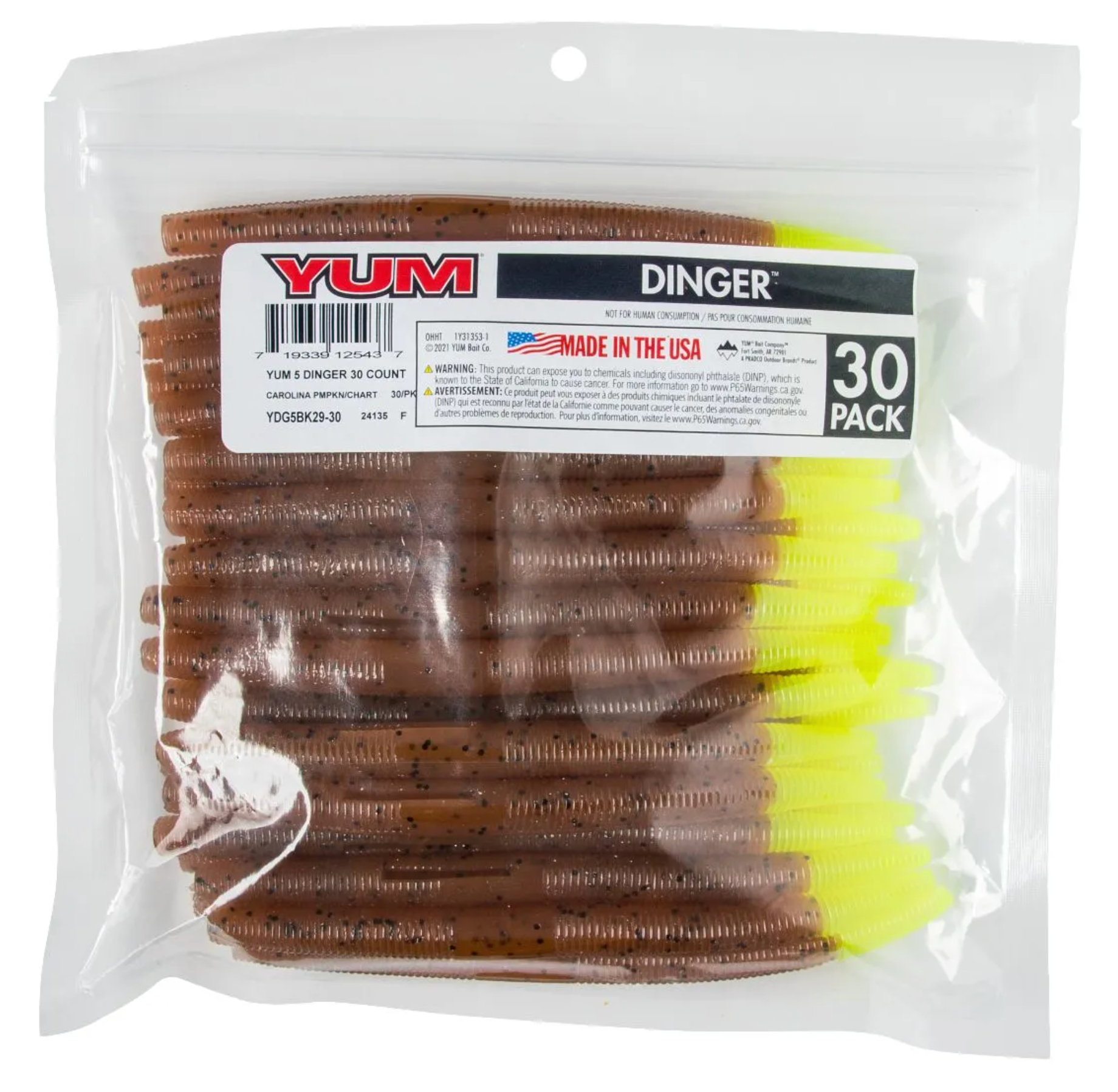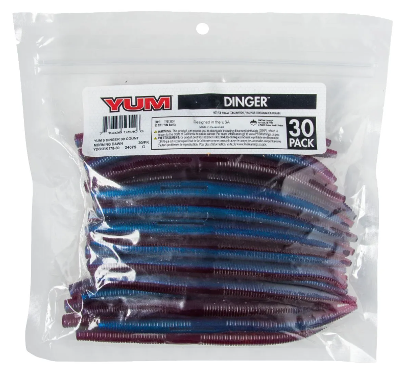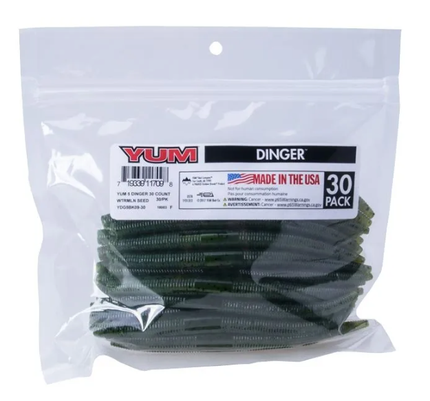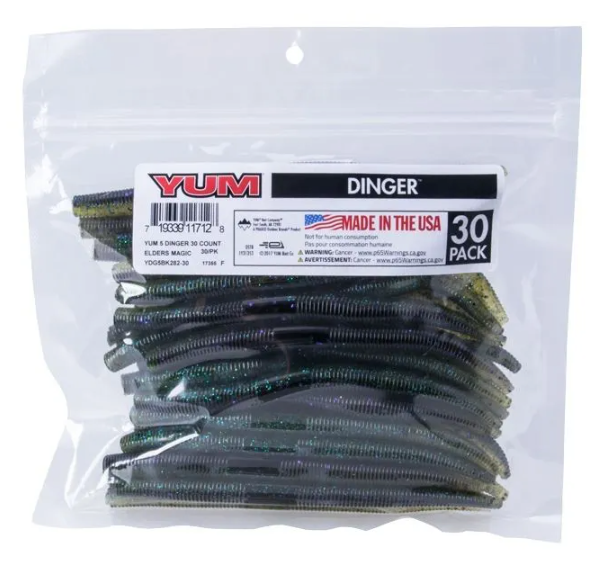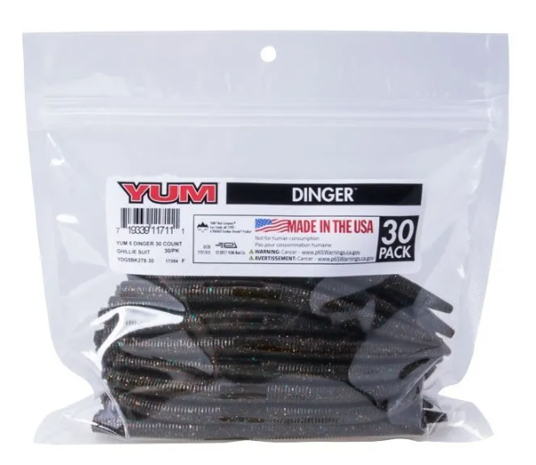 You asked for bulk packs of YUM Dingers, so here they are. The Dinger became an instant bass fishing classic lure. One of the most versatile soft plastics on the market, the YUM Dinger can be Texas, Carolina and wacky rigged, weighted or weightless, and catches bass when other lures fail. This soft plastic bait presents a very subtle life-like action that even highly pressured fish can't resist. YUM Dingers have a unique hook slot that provides better hook-ups, and they’re tougher than similar baits – so you get more fish per bait than any other.