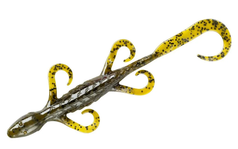 The YUM Lizard is the ultimate finesse lizard. It has everything an angler needs to fool big, finicky bass -- curly legs that create motion and a long curly tail that pushes a lot of water. Tough, durable plastic holds up to multiple fish, yet remains soft and supple even when fished in cold water.