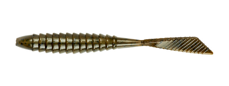 Designed to catch finicky bass in any clear-water situation, the Warning Shot features a ribbed body, flat bottom and a long, thin blade-like tail. This thin tail wags and moves with every breath of current or twitch of the rod tip. Perfect for drop shot rigs and as a finesse jig when threaded on a jighead.