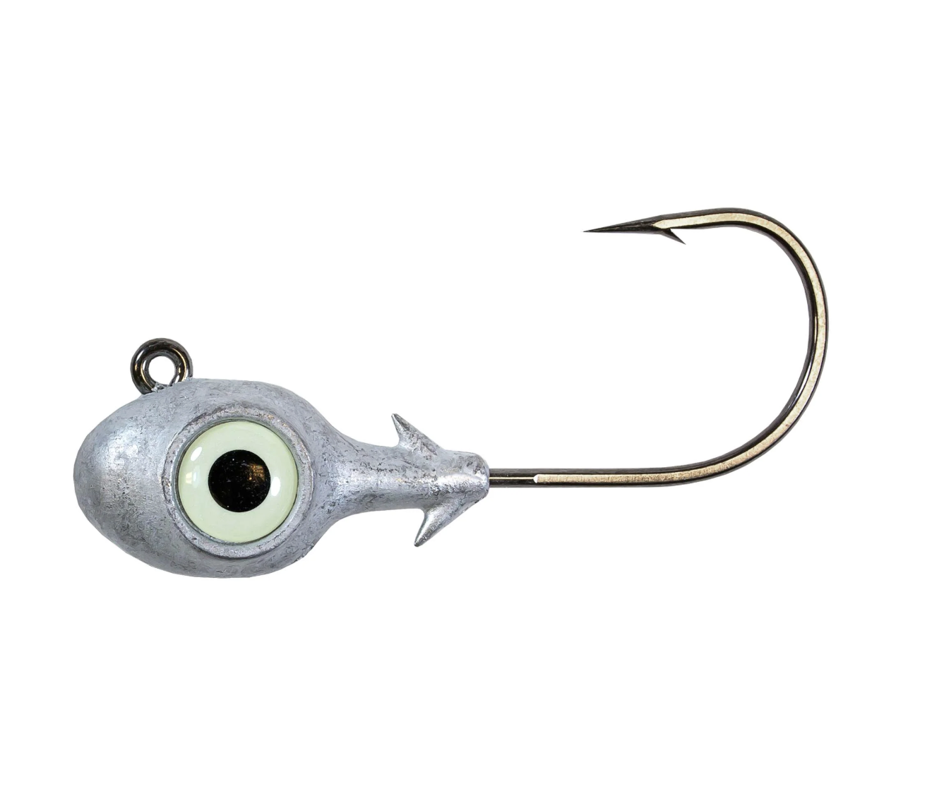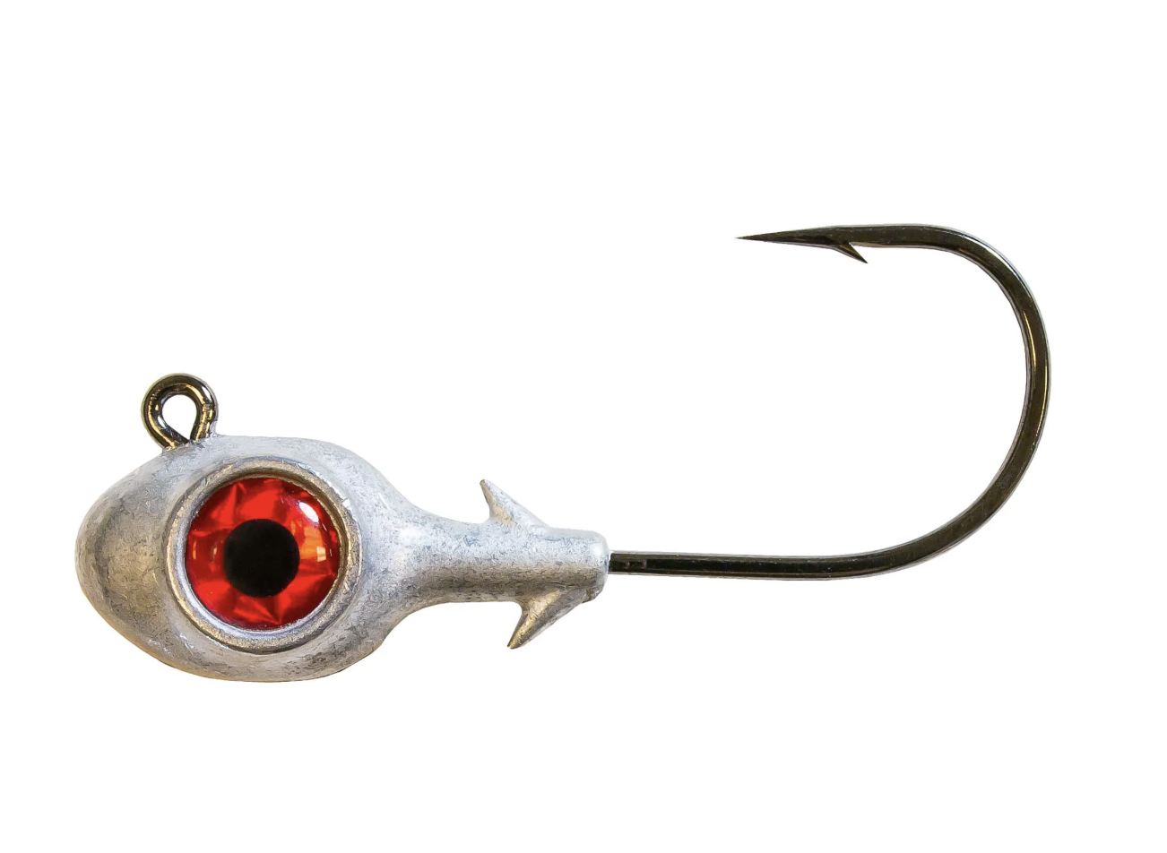 The overwhelmingly popular Eye Strike® jigheads have now been upsized to help trigger strikes from and tame the likes of striped bass, large trout, pike, musky, trophy bass, and more. Armed with a super-strong 6/0 Mustad® UltraPoint® hook that is capable of standing up to fresh- and saltwater bruisers, the Striper Eye™ jighead matches up with a variety of large soft plastic swimbaits and jerkbaits. Each jighead is equipped with twin conical molded keepers that grip standard softbaits securely.